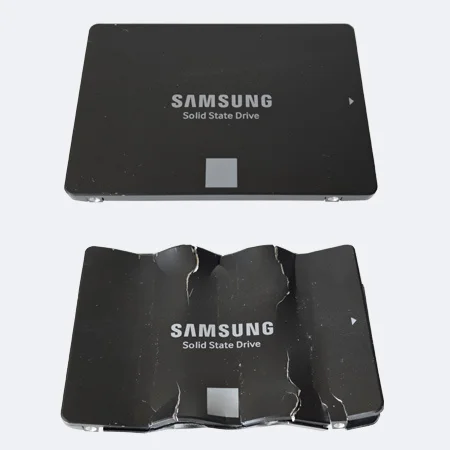 Common Workstation SSDs are perfect for destruction by the Pure Leverage Waffler, crushing both 2.5″ drives and M.2 formats.
